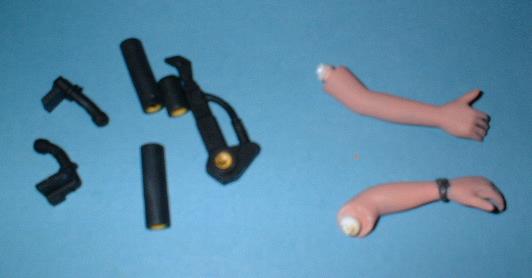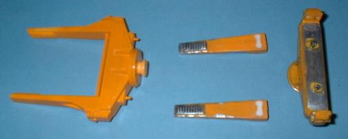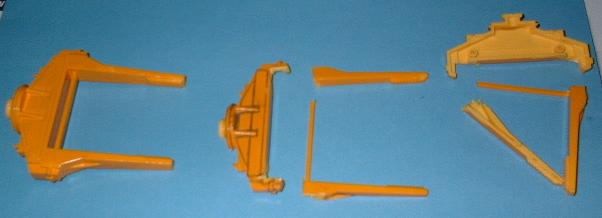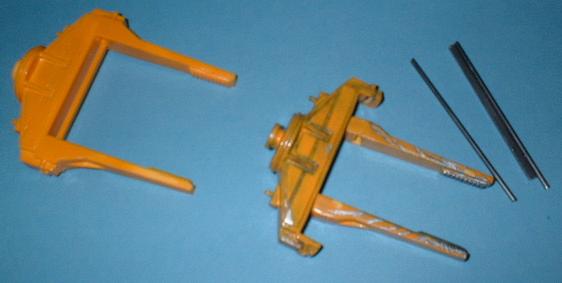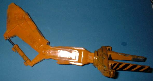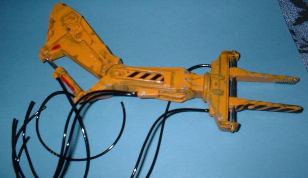 Die Zange und die Hydraulik sind bereits fertig bemalt und mußten zum Kleben das Arms eingesetzt werden. |